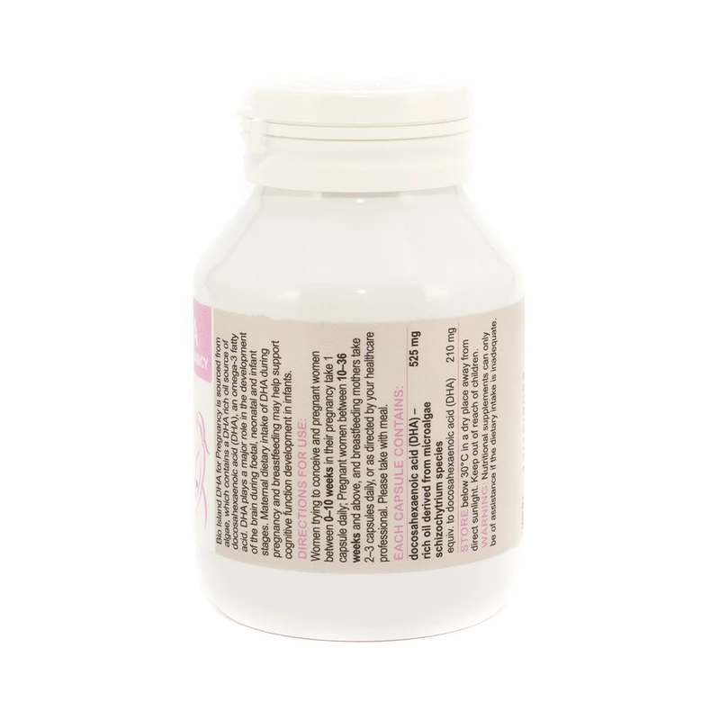 Each capsule contains 210mg seaweed oil DHA
