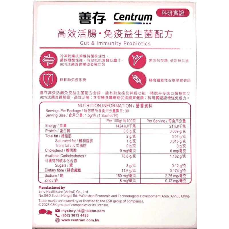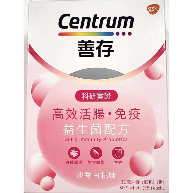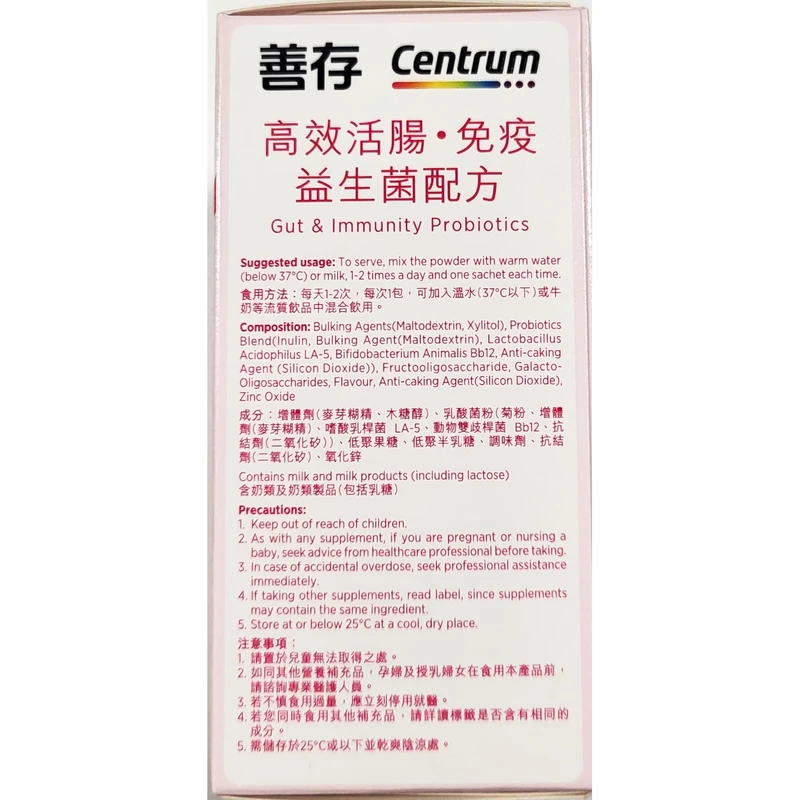 Centrum Gut & Immunity Probiotics (peach flavour) contains strains from Denmark and is clinically proven to help support immunity. It ensures 90% of the probiotics are alive when reaching the intestines. The fresh and light white peach flavour is low fat and without added sucrose. Enjoy your lifestyle with this new enjoyable probiotics to help immunity level up at anytime and anywhere.