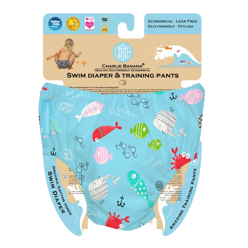 All Charlie Banana 2-in-1 Reusable Swim & Training Pants are expertly designed to minimize accidents at the beach, in the pool, or while potty training. Wide back elastic deliver a snug and comfortable fit for your baby. Made with super soft organic cotton inner lining and a multi-layer inner terry pad for added absorption.