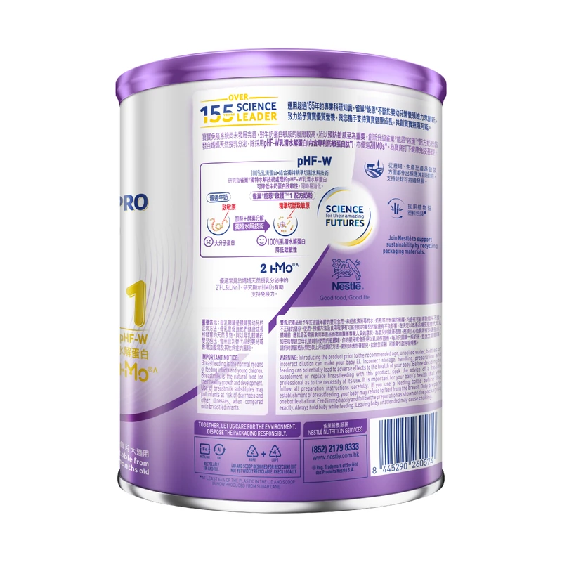 pHF-W: Utilize 100% Whey Protein and undergo Nestle’s Unique Hydrolysis technlogy to lower cow milk protein’s allergenicity and making it easy-to-digest.