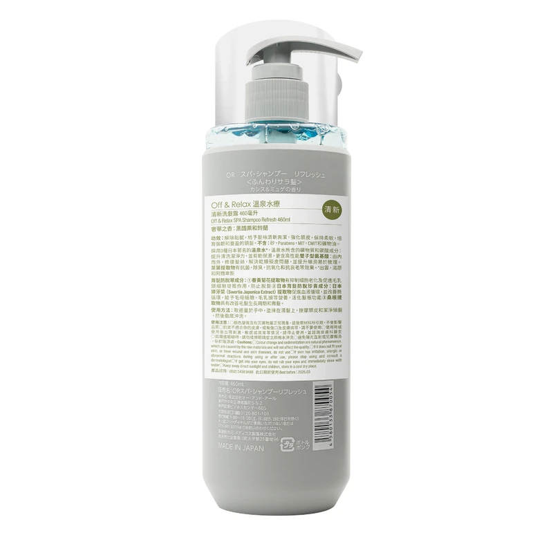 3 kinds of Japan’s famous hot spring water and high-performance gemini amino acids, enhance cleaning power, repairs hair, smooth and easy to comb. Tea extract has antioxidant and anti-aging effects. Chamomile flower extract, Swerti Japonica extract and Morus Alba root extract etc., have the functions of preventing hair loss, activating hair roots, improve hair growth cycle and hair growth.