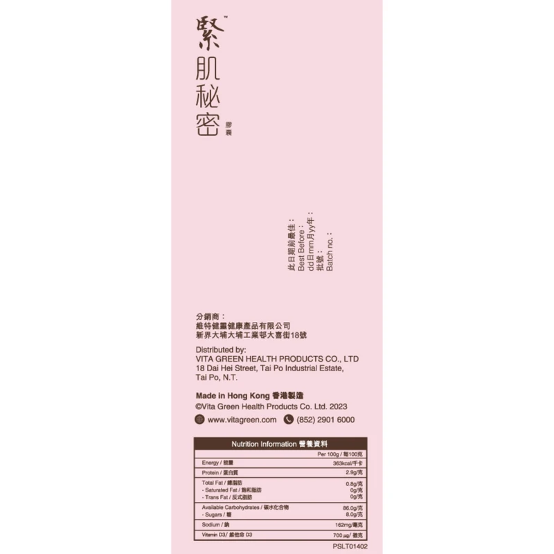 Herbal extract (Astragali Radix Praeparata Cum Melle, Cimicifugae Rhizoma, Codonopsis Radix, Corni Fructus, Mume Fructus, Alpiniae Oxyphyllae Fructus, Angelicae Sinensis Radix, Rosae Laevigatae Fructus, Atractylodis Macrocephalae Rhizoma (stir-baked), Cinnamomi Ramulus, Rehmanniae Radix Praeparata, Paeoniae Radix Alba (Processed with vinegar), Dioscoreae Rhizoma, Ginseng Radix et Rhizoma), Hydroxypropyl Methyl Cellulose, Water, Gelling Agent (407, 508), Vitamin D3, Color (171)